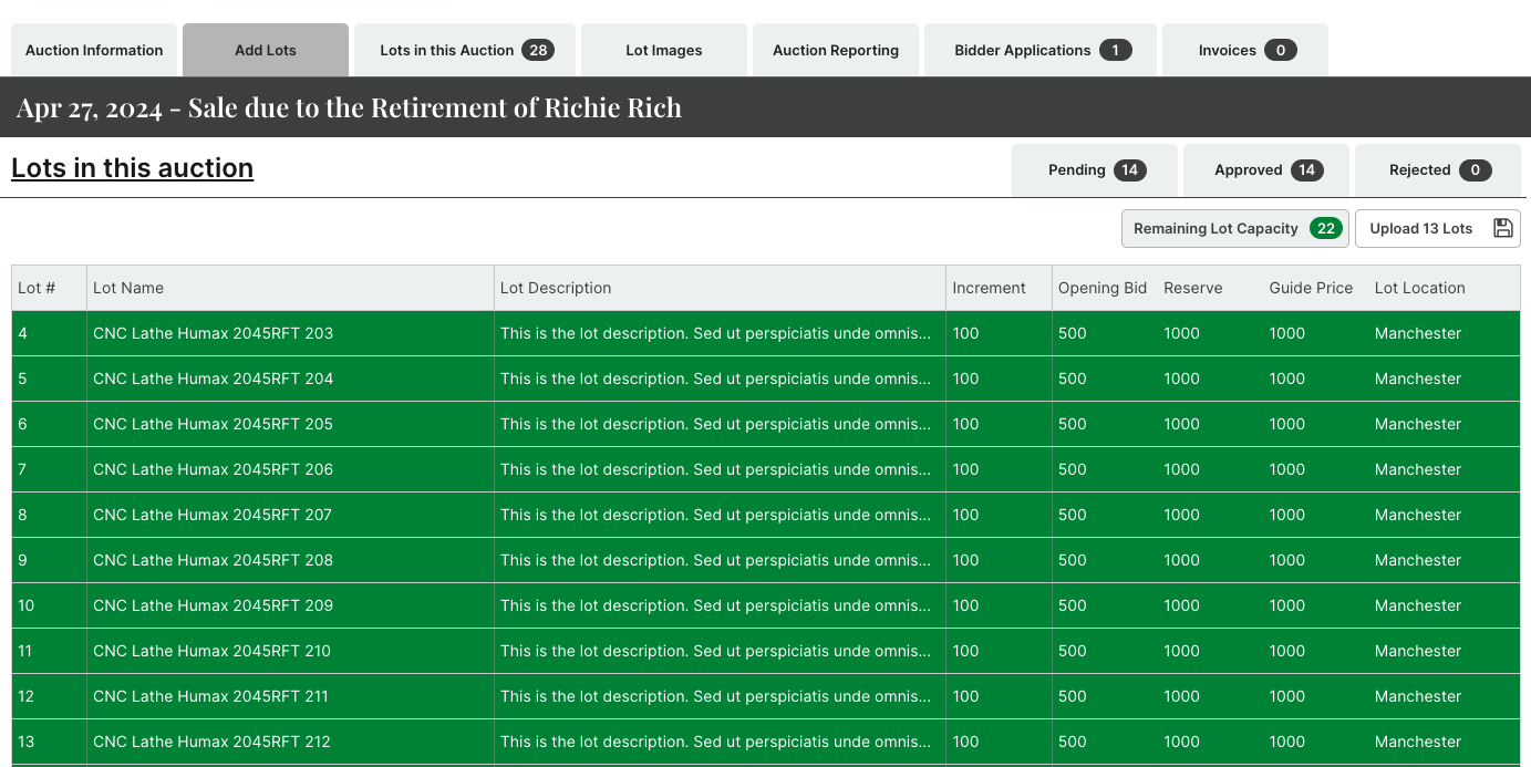Once the lots are ready to be published they an be done so by following the details in the section Publishing Lots.
