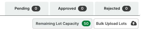 <figure><img src="https://1337513564-files.gitbook.io/~/files/v0/b/gitbook-x-prod.appspot.com/o/spaces%2FPwP6OfR8Ivf5IWvePA3N%2Fuploads%2FN7epjPACyQbhQ8ZRD1vf%2Fimage.png?alt=media&#x26;token=93eae99b-dbb6-43aa-b3ce-95e6adbd5387" alt=""><figcaption><p>Bulk Upload Lots Button</p></figcaption></figure>