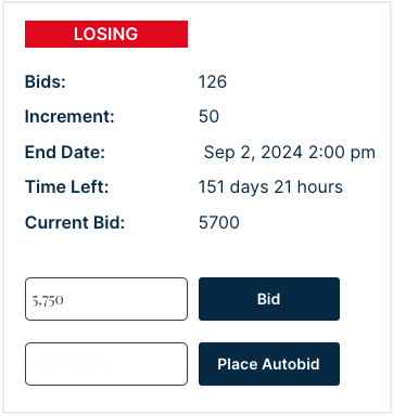 <figure><img src="https://1337513564-files.gitbook.io/~/files/v0/b/gitbook-x-prod.appspot.com/o/spaces%2FPwP6OfR8Ivf5IWvePA3N%2Fuploads%2F9muTn8PiaAu8tdXJQJRv%2Fimage.png?alt=media&#x26;token=f8eb7d07-2150-4742-afe8-7062c5b11da1" alt=""><figcaption><p>Placing an autobid, leaving the auction platform to bid to your maximum value on your behalf.</p></figcaption></figure>